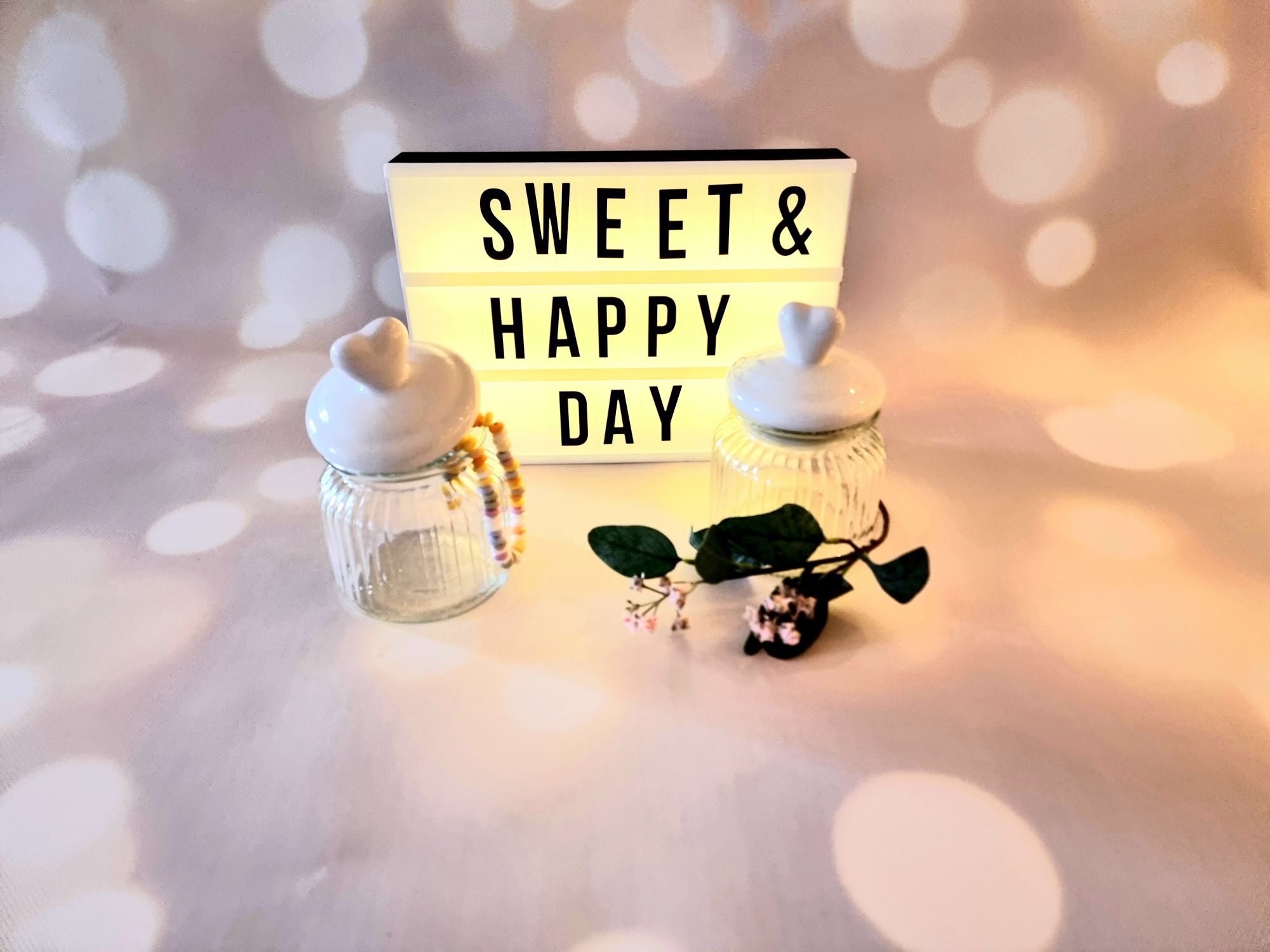 Dazu gehören Candyzangen zur Entnahme der Candies, Kioskpapiertüten (weiß) sowie meine Dekorationsartikel.